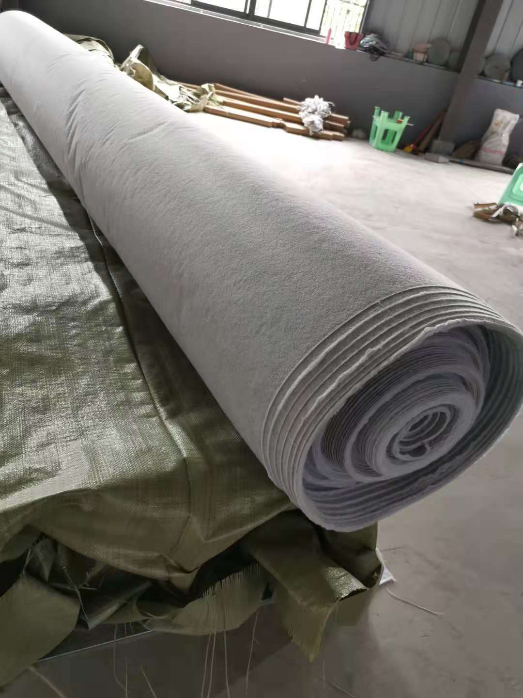 本工程主要采用的土工膜通常长 50m、宽 6m,在施工现场采用的搬运方法是人工抬运,主要是运用钢管穿入卷芯中,将露在两侧的钢管上系上绳套进行抬运。 在对土工膜搬运的过程中,严禁将外包装撕裂,从而避免土工膜受到损坏。