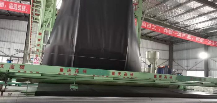 6.焊膜时不许压出死折,铺设HDPE土工膜时,根据当地气温变化幅度和HDPE土工膜性能要求,预留出温度变化引起的伸缩变形量。