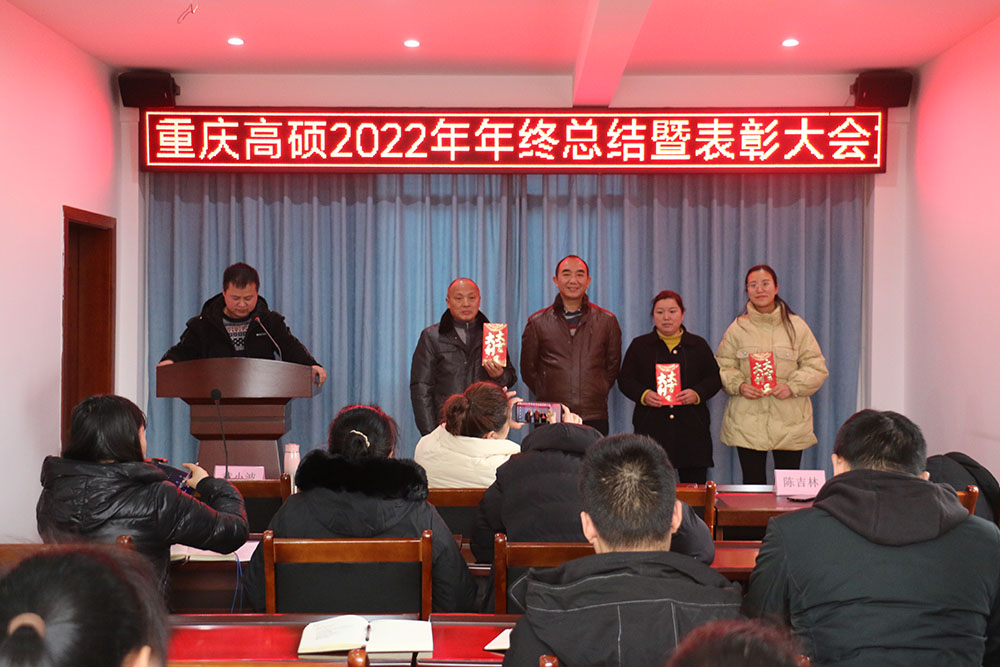 最后由郭强总经理颁发2022年度优秀员工表彰,大会在热烈的掌声中圆满结束。2023年让我们朝着重庆高硕展开的宏伟蓝图,同心同德、群策群力,为我们深爱的事业、美好的明天而努力奋斗!