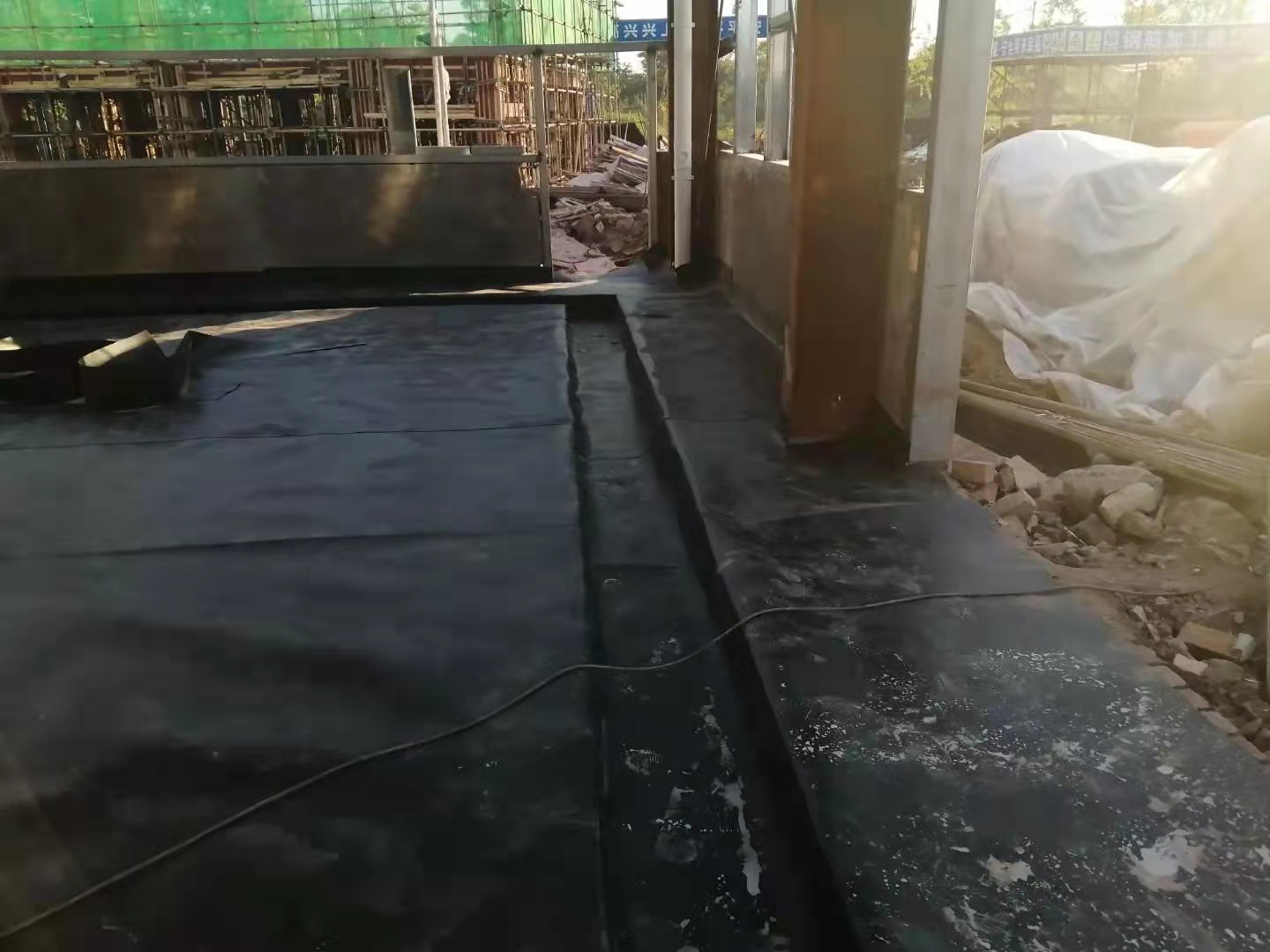 选用热熔焊接法,融合土工膜专用型胶。分叁步开展:1、将立柱与地面相接处的防渗膜电焊焊接成总体,焊接严密,无孔洞;2、在立柱四周涂上土工膜专用型胶,高宽比为20厘米上下;3、将立柱体四周的防渗膜黏贴在涂抹土工膜专用型胶的水泥柱子内壁。查验早已铺好的防渗膜, 完好无损整平。在防渗膜上铺设层防渗土工布,一样整平无皱褶,产生对防渗膜的顶层维护。终,再铺设过多层和地面土壤层,竣工。