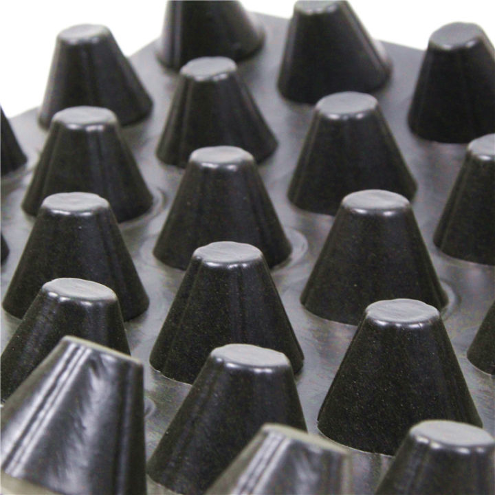 排水板在平板上有突起的圆台中空布局,上铺土工网、土工布构成夹层排水空间,雨水从土工布进入夹层排水空间疾速排出,大大消除防水层的静水积水表象,经过自动排水能够到达防水的作用。