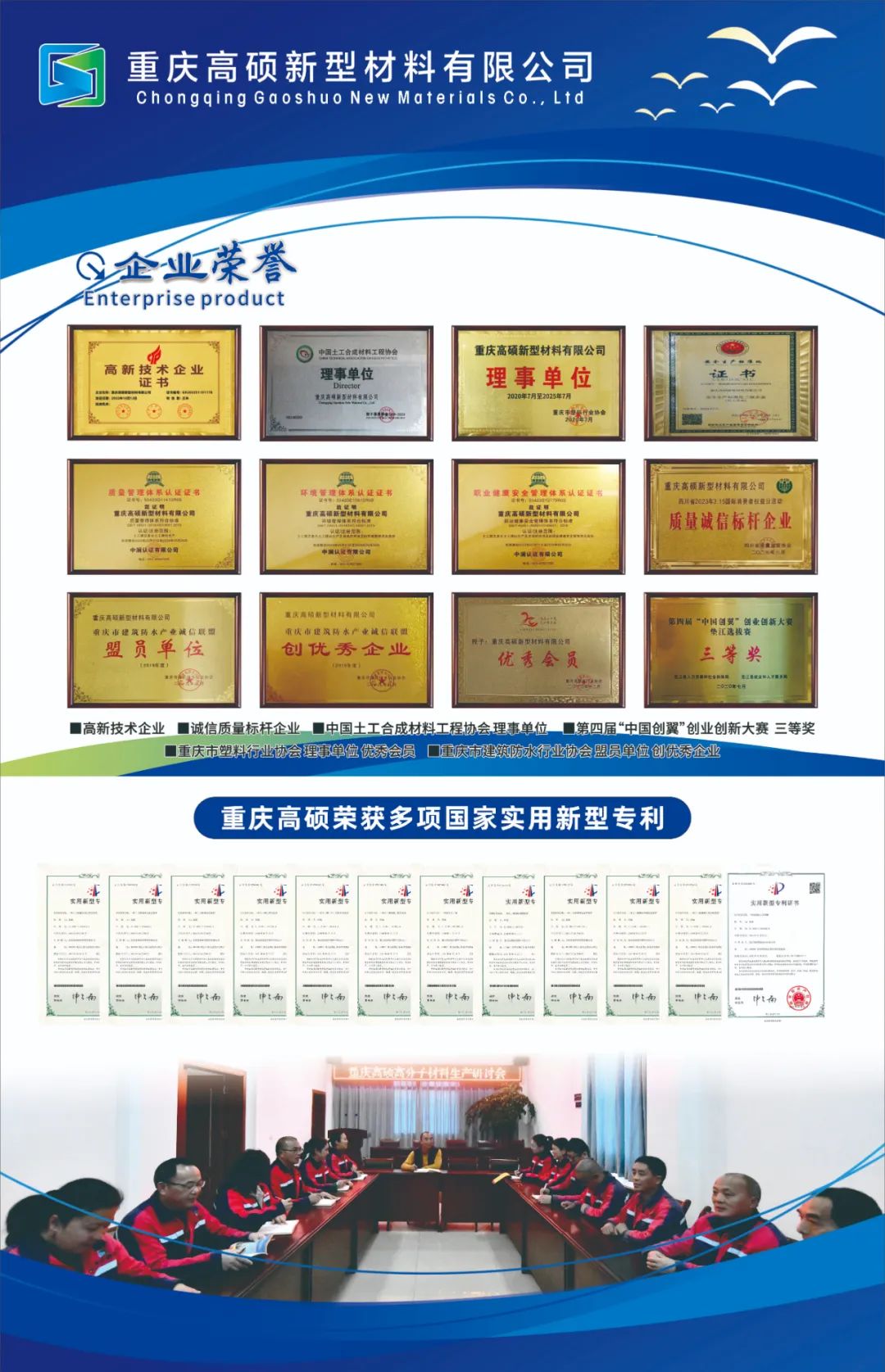 公司是国家高新技术企业,中国土工合成材料工程协会理事单位,重庆市新材料产业联合会会员单位,通过了质量管理体系、职业健康安全管理体系、环境管理体系认证,拥有多项实用新型专利。