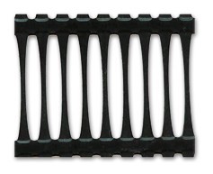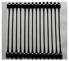 单向拉伸的土工格栅是由高分子聚合物经挤出压成薄板再冲规则孔网,然后纵向拉伸而成。这种过程中使高分子成定向线性状态并形成分布均匀、节点强度高的长椭圆形网状整体性结构。此种结构具有相当高的拉伸强度和拉伸模量,特别是我公司此类产品更具有超国际水平的高早期(伸长率在2%—5%)拉伸强度和拉伸模量。给土壤提供了理想的力的承担和扩散的连锁系统。该产品拉伸强度大(>150Mpa),适应各种土壤,是目前广为采用的加筋加固材料。